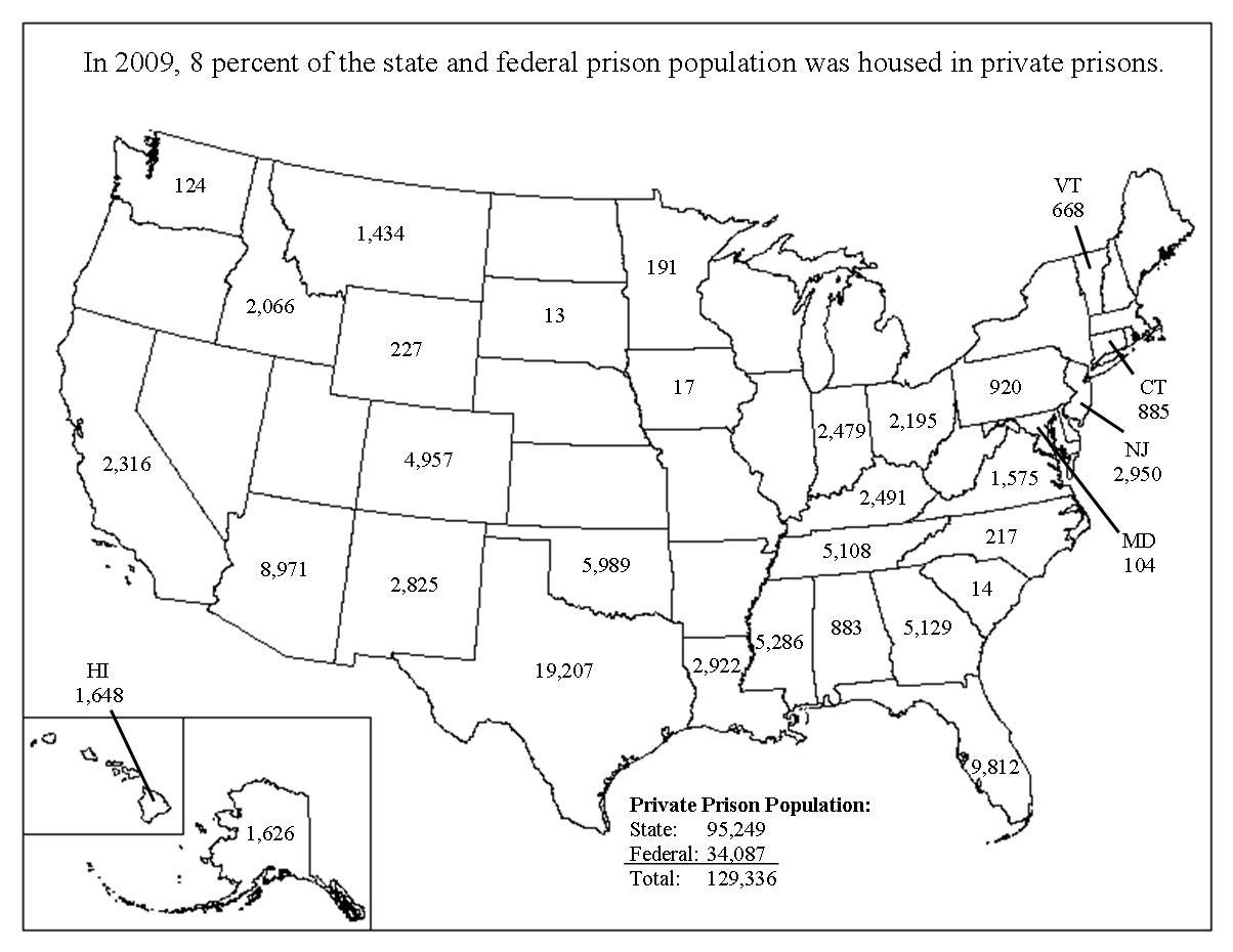 Since I am writing from Texas, we will begin with the money, honey. As you can see from the map above, Texas is big on private prisons, the largest user of them, in fact, in the nation by a significant margin. The basic idea behind this model is that businesses would have a vested interest in lowering operating costs to a degree unmatchable in government circles, and would thus be more efficient. Some studies have, in fact, shown this to be the case. Some, like the General Accounting Office and the National Institute of Justice report (listed on page 32 of the JPI study) show little difference in costs. I think the more distant studies (like the GAO one) are quite a bit more believable than the ones paid for by the corporations in question, but let ‘s give them the benefit of the doubt and pretend that they actually do save some money.
