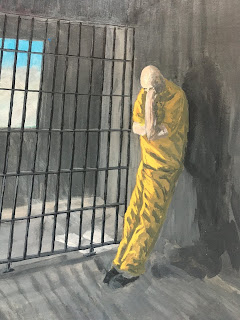 This is the fifth day now that I haven’t been able to get started on the next project. My living situation is such that I cannot leave my materials and accoutrements out except on the weekends and a few hours in the evenings. We are subject to Gestapo-esque cell inspections (The purpose seemingly to make sure everyone is properly oppressed.) which can pop up throughout the week with only five minutes notice. All personal property must be stowed inside a foot locker and there are a few other requirement but not pertinent to this issue. This has an inconvenient limiting effect on my art work but I have developed a system of quickly storing my paints, brushes, blotter pad and so forth. I haven’t unpacked since Monday morning, five days ago.