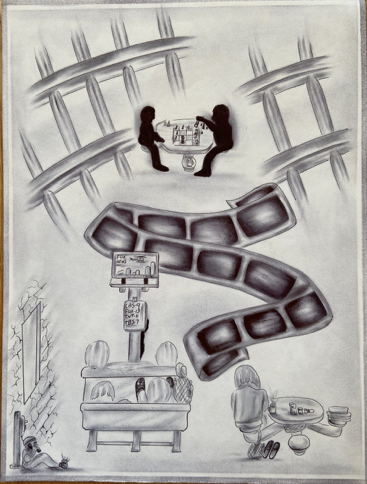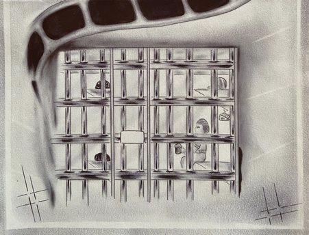 “Will wonders never cease,” Marlow quipped, but the man had already hauled himself to the next cell. He sat there, listening to the sounds of the prison as it dreamed: far down the run to the left, he could hear the low oompahoompahing of Norteño music coming from the speaker he’d made for Cacuy; in a few hours, once the man knew everyone was awake, they’d be able to hear that thing all the way over on D-Line, what with all the magnets he’d used. A few minutes later, the crash and bang of the food carts as they rolled into place, the shouts of the kitchen crew as they loaded the carriers and started lugging them up the stairs: clank, slam, ding, the daily 3:30am-ish wake-up call.